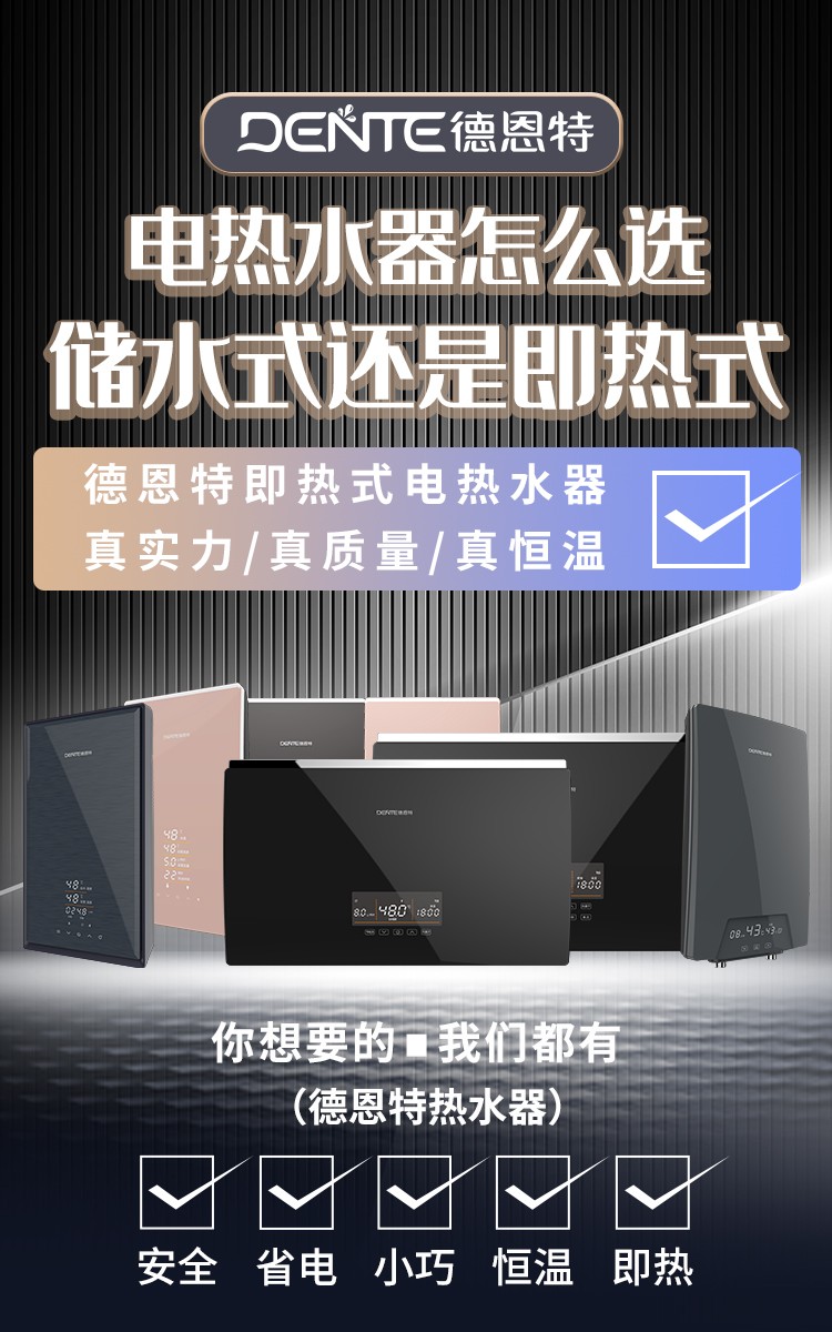 德恩特品牌旗下涵蓋即熱式電熱水器,速熱式電熱水器,快熱式電熱水器品牌和凈水機等