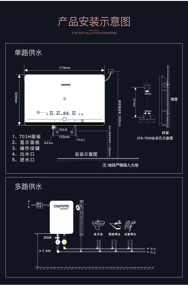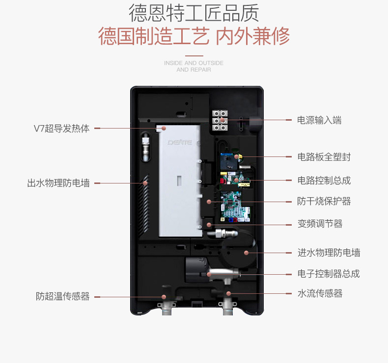 德恩特DTR/V7E308負離子發生器 家用恒溫淋浴速熱